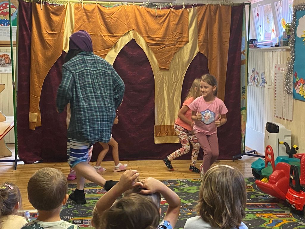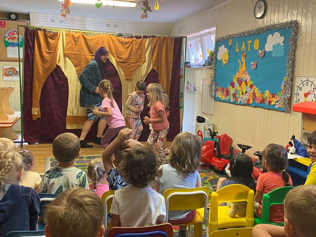 25 lipca 2023 roku mieliśmy niezwykłą przyjemność gościć w naszym przedszkolu Teatr Blaszany Bembenek, który zaprezentował nam niezwykle wciągającą i pełną przygód historię krasnali.