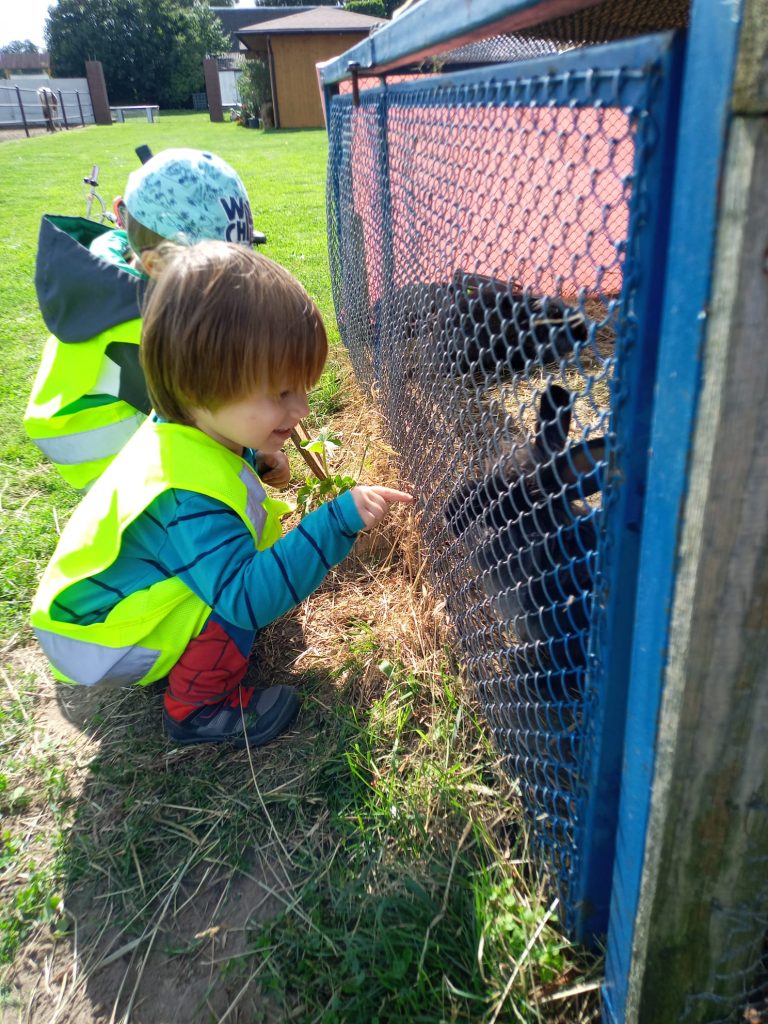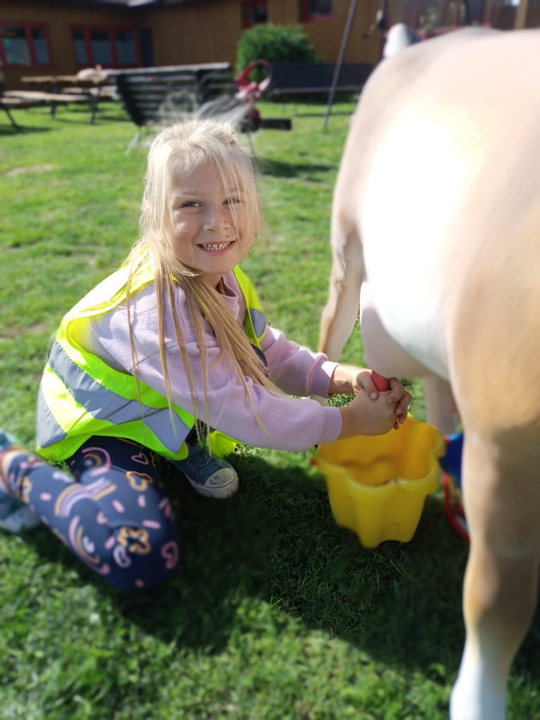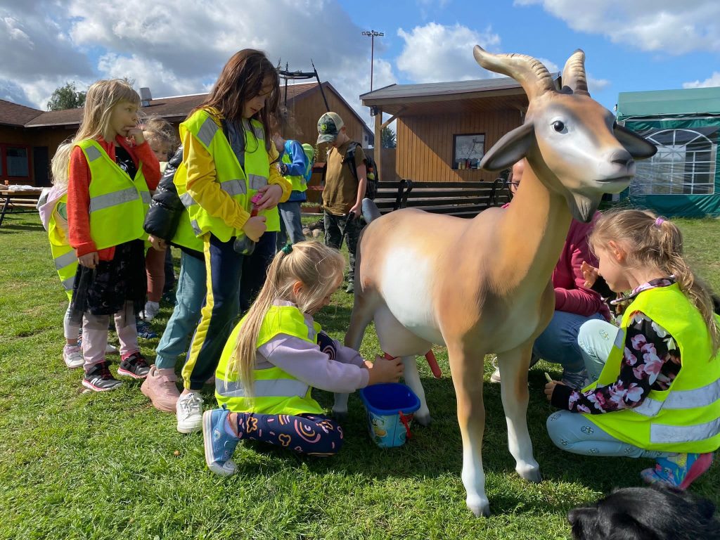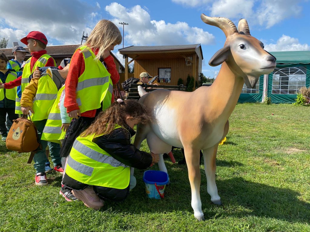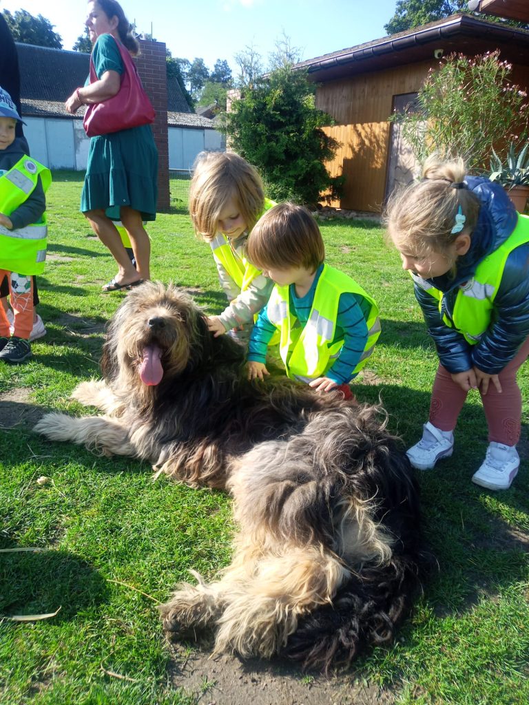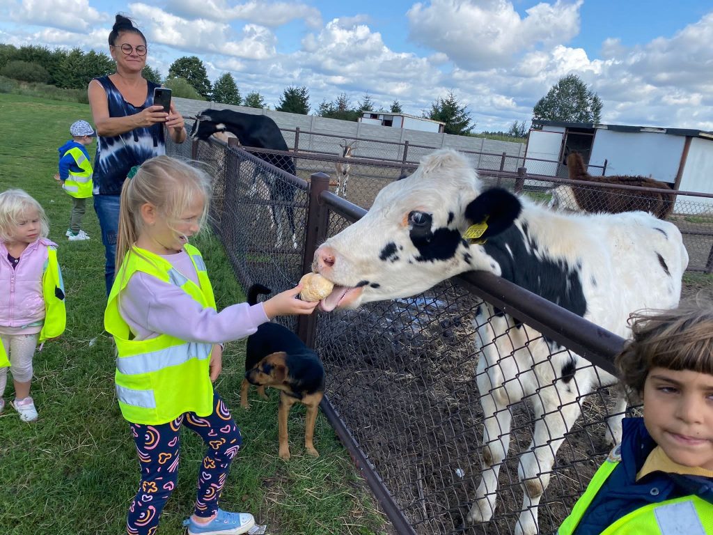 Przybycie do gospodarstwa było niczym wejście do krainy pełnej zwierząt. Dzieci z zapartym tchem obserwowały bażanty, daniele, krowy, kozy oraz wiele innych. Wielkim zainteresowaniem cieszyły się także psy i koty, które biegały wokół naszych małych podróżników, budząc w nich radość i uśmiech.
