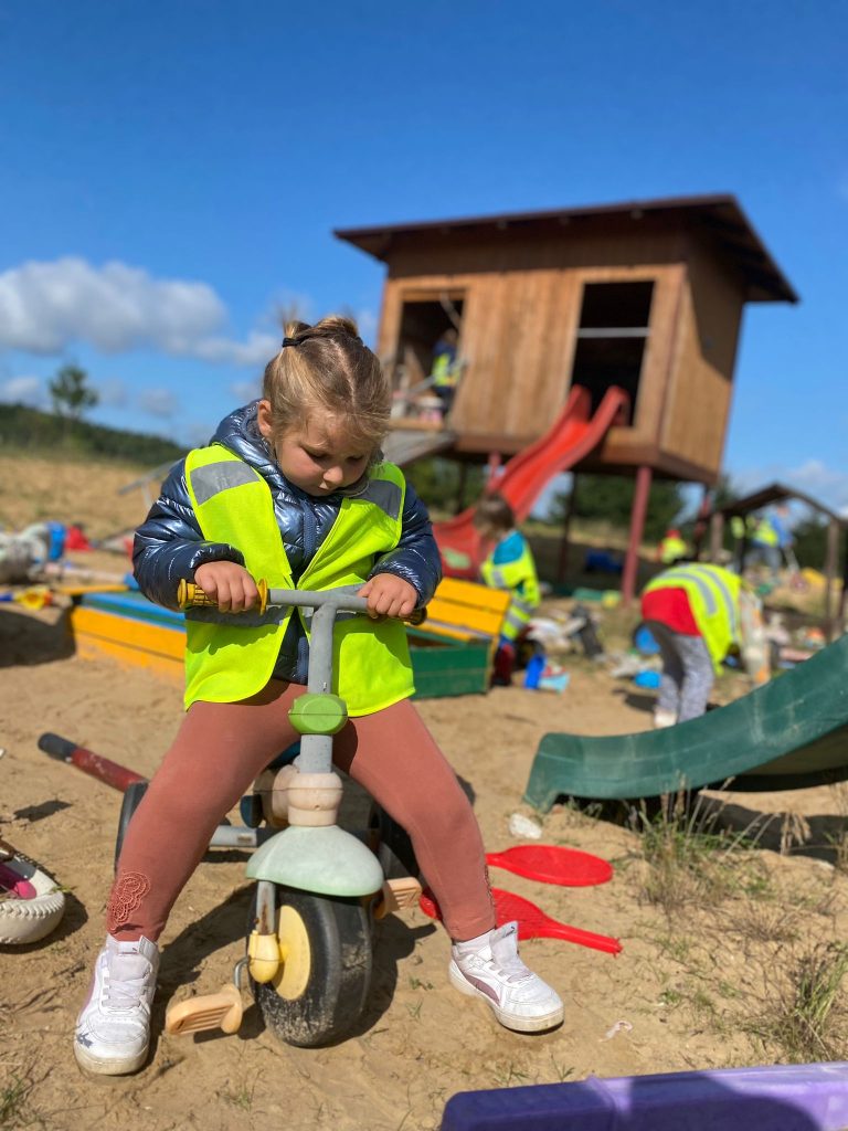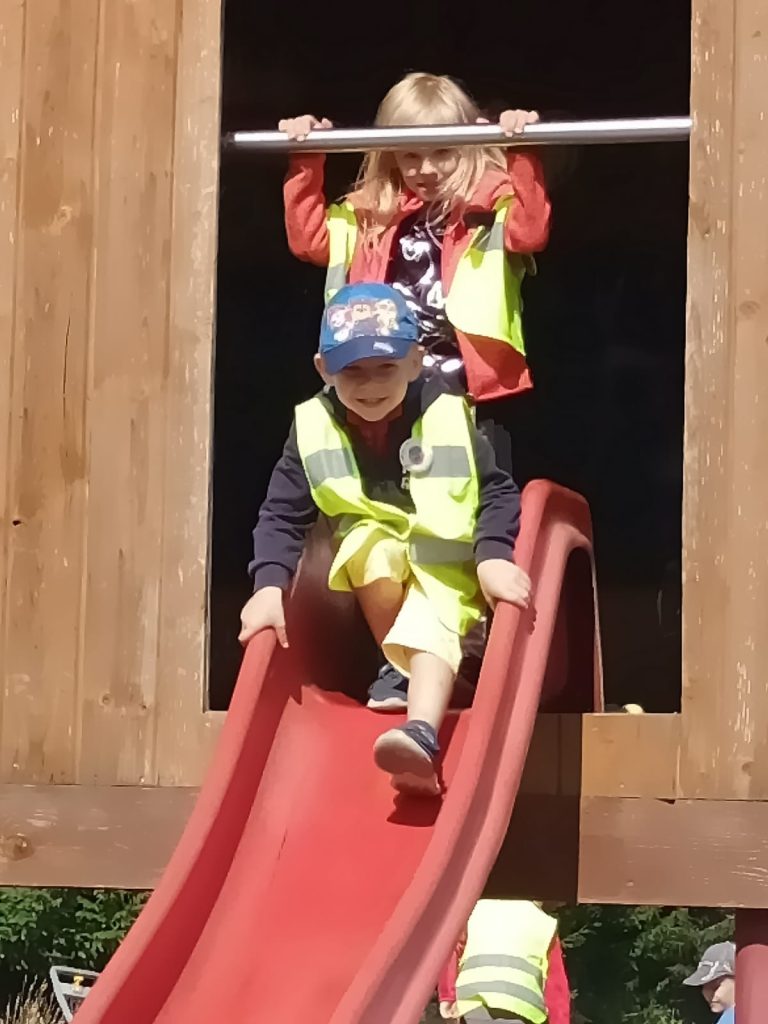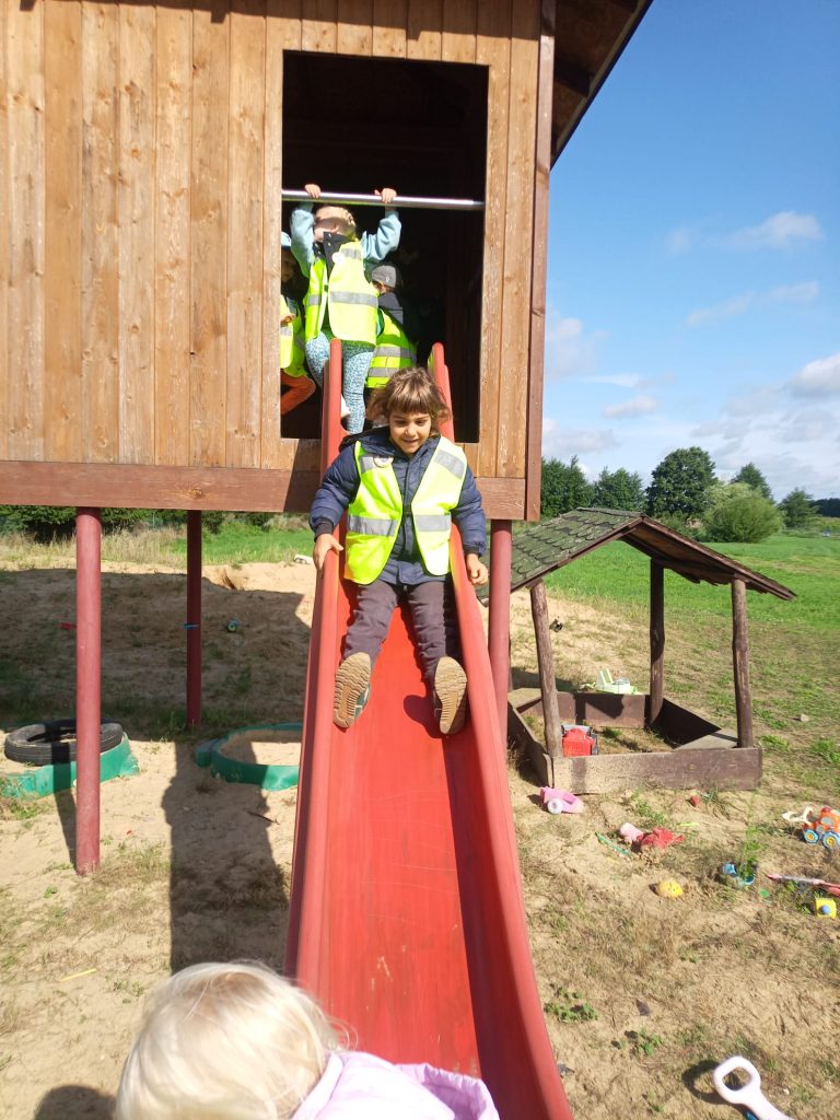 Nie tylko zwierzęta przyciągały uwagę dzieci. Na terenie gospodarstwa znajduje się plac zabaw, który stał się rajem dla naszych przedszkolaków.