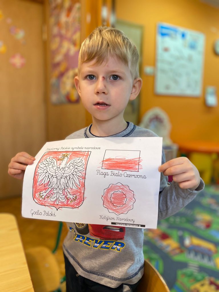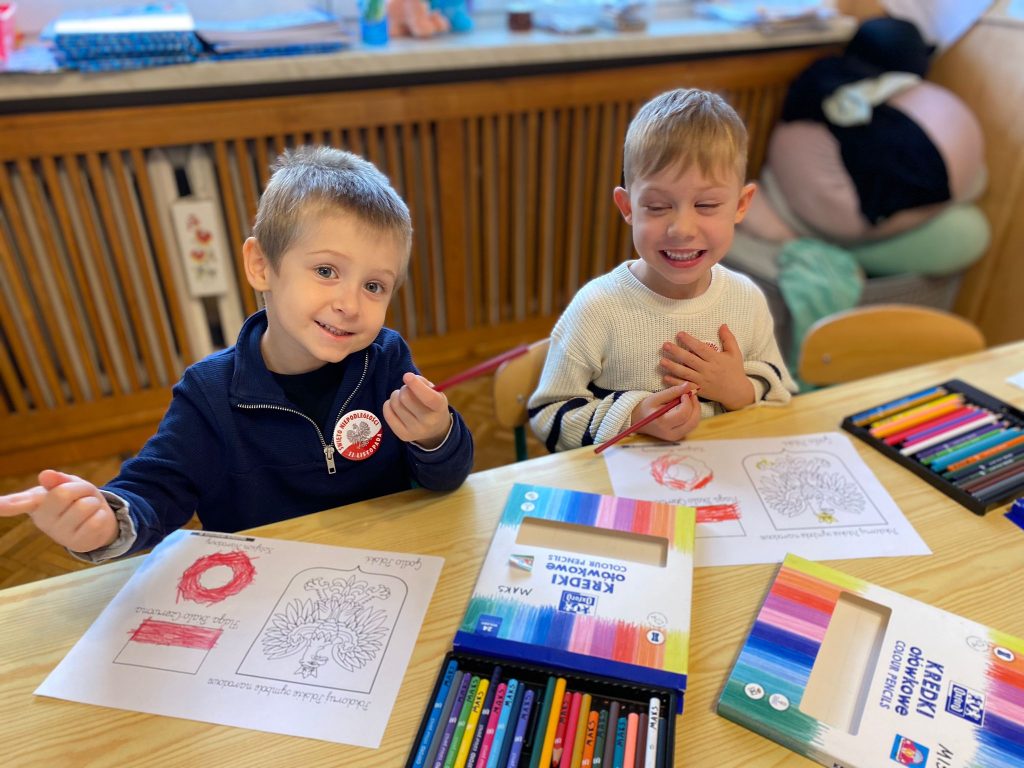 Zajęcia te nie tylko rozwijały umiejętności plastyczne naszych przedszkolaków, ale także były okazją do rozmowy o historii, kulturze i wartościach, które są ważne dla naszego narodu. Dzieci miały możliwość wyrażenia swojej indywidualności, a jednocześnie poczuły się częścią większej wspólnoty.