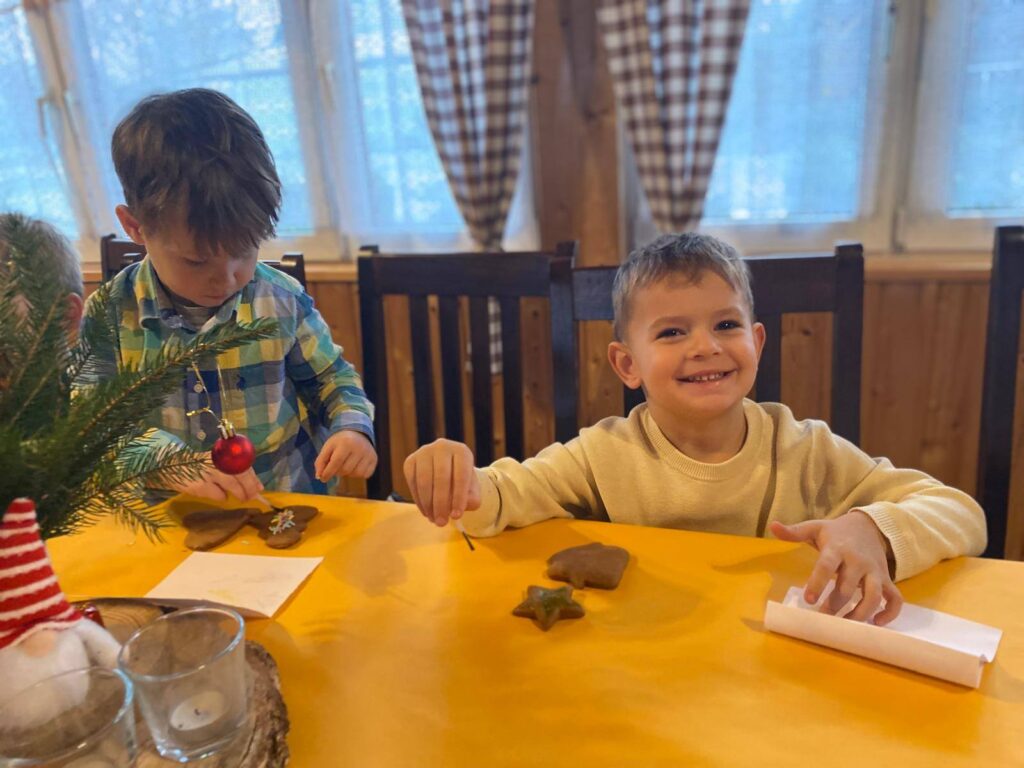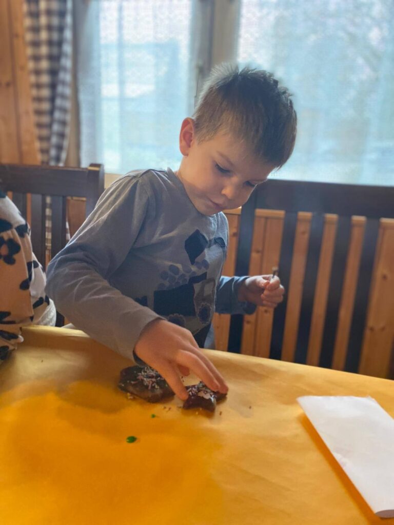 Kolejnym punktem programu było dekorowanie pierników. Pod czujnym okiem opiekunów dzieci tworzyły wyjątkowe wzory z lukru i barwnych posypek, a przy okazji ćwiczyły swoją kreatywność i zdolności manualne. Entuzjazm był tak duży, że niektórym trudno było powstrzymać się przed skosztowaniem jeszcze ciepłych, pachnących korzennymi przyprawami wypieków!