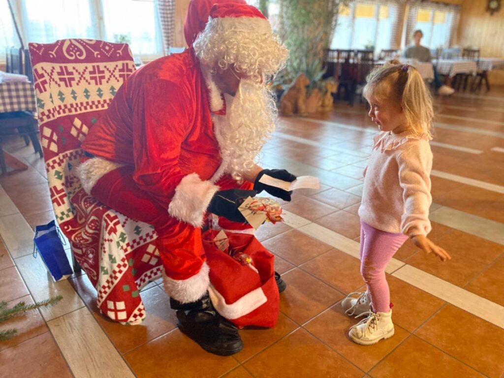 Z okazji Mikołajek, nasze przedszkolaki wybrały się dzisiaj na pełną wrażeń wycieczkę do gospodarstwa agroturystycznego „Wesoła Zagroda” w Witoldzinie. Już od progu dzieci witał niezwykły gość – sam Święty Mikołaj! Wszystkie przedszkolaki z ogromną radością podchodziły po upominek i mogły zadać pytania Mikołajowi. Chwila spędzona w jego towarzystwie była dla dzieci niezapomnianym przeżyciem – maluchy z przejęciem opowiadały o swoich marzeniach i niespodziankach, jakie przygotowały na świąteczny czas.